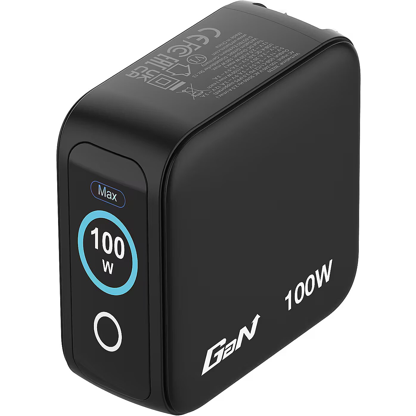 LongDesc - 100W Power, 3 Ports, and a Smart DisplayDelivering an impressive 100W total output, this mini GaN wall charger can easily power a laptop, tablet, and smartphone at once. The integrated TFT display keeps you informed with live charging statistics for each port, while PPS (Programmable Power Supply) dynamically adjusts power output for maximum speed and safety across all connected devices.Smart DisplayThe integrated touchscreen display shows real-time insight into the GaN Charger’s performance. Switch between modes to view total wattage, individual port power output, total charging time, and charging status—Eco or Turbo Boost. The display can also be flipped, ensuring it’s easy to read no matter how the charger is oriented in the socket.Advanced Safety and GaN EfficiencyBuilt with advanced GaN semiconductors, this charger achieves exceptional energy conversion efficiency while keeping temperatures low. It incorporates comprehensive safety protections, including overcurrent, overvoltage, overheating, and short-circuit safeguards, ensuring your devices stay protected during every charge. Its fireproof PC housing further enhances reliability and peace of mind.Travel-Ready DesignWith its replaceable EU, UK, and US plugs, it’s the ultimate travel companion. Compact yet powerful, it fits neatly into any bag, making it ideal for charging on the go. From your workspace to hotel rooms around the world, this charger adapts effortlessly to your needs.