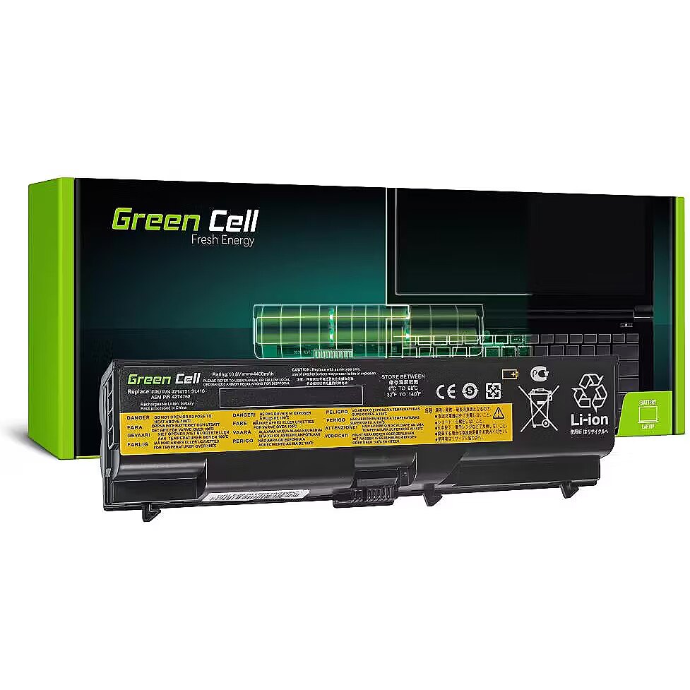 Description - Battery for Lenovo T410 11,1V 4400mAh Green Cell is a high-quality laptop battery dedicated for IBM Lenovo ThinkPad T410 T420 T510 T520 W510 Edge 14 15 E525. The battery features Li-ion cells developed by Green Cell, that are a guarantee of real capacity, reliability and long working hours. The battery is a precisely designed model that matches a specific laptop to ensure highest work efficiency, stability and safety. Genuine Green Cell battery for your laptop High performance thanks to Green Cell cells Perfectly compatible with precisely mapped electronics Restore mobility