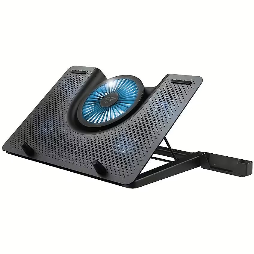 LongDesc - Premium LED-illuminated gaming laptop cooling stand with 5 fansStay CoolWant to stay cool during the most heated gaming sessions? Or switch from play to work without taking any breaks? The Trust GXT 1125 Quno Laptop Cooling Stand will keep your equipment cool in every situation. With the blue illumination added to the 5 fans, you’ll stay cool in every sense of the word.Peak PerformanceThe sturdy aluminium design of the stand fits every laptop up to 17.3”. Even the biggest ones will stay cool, thanks to the stand’s 5 fans. Keeping your laptop cool will result in the best possible performance.Finding Your AngleThe stand can be adjusted in 5 different steps, up to 190mm high. As a result, you will be able to find the perfect viewing height and angle. You won’t just stay cool, but you’ll have a better overview of your matches.An Eye on your PhoneWorried that you’re going to get too absorbed in your game and miss that important phone notification? We’ve got you covered: the detachable phone stand allows you to place your phone in sight, ensuring that you won’t miss a thing.