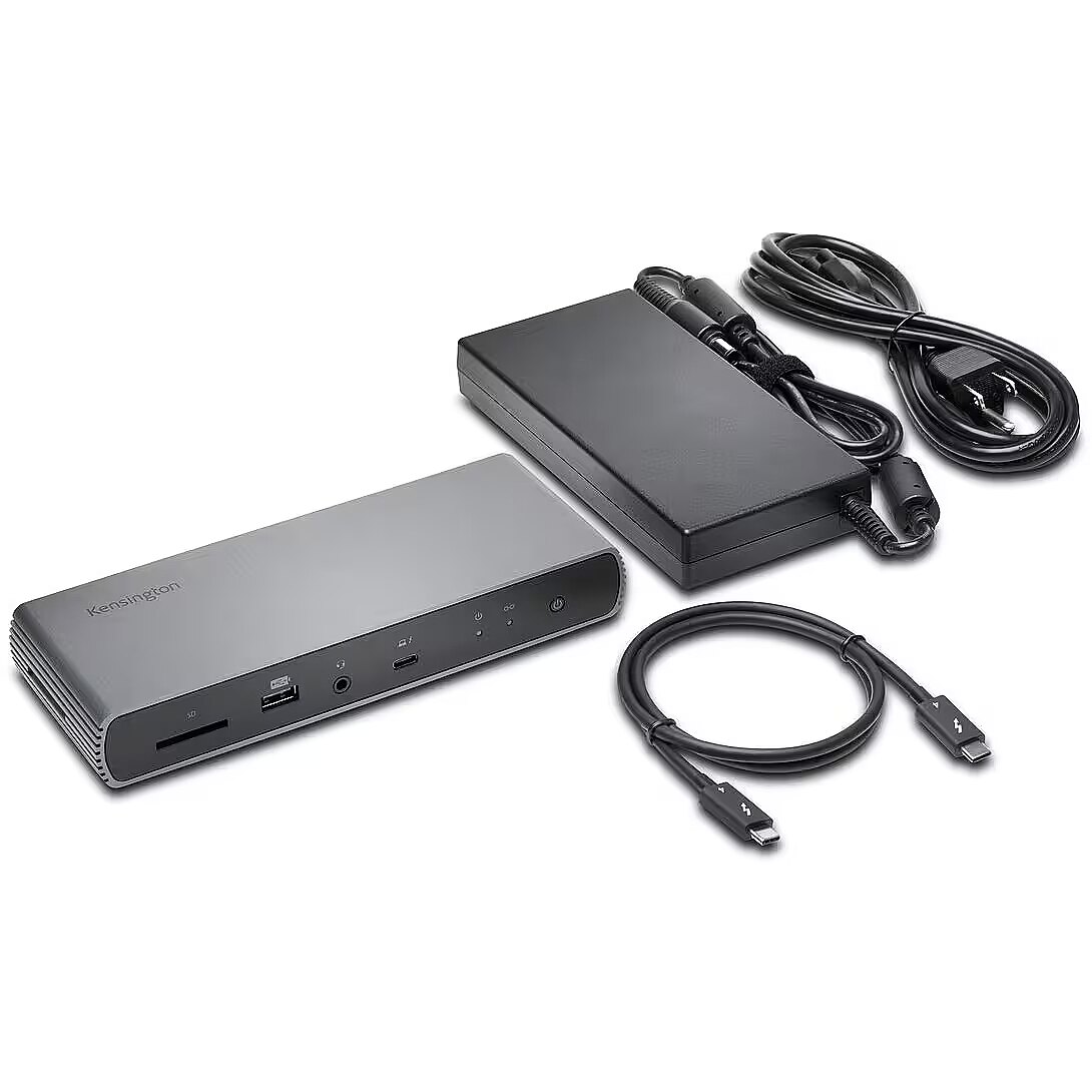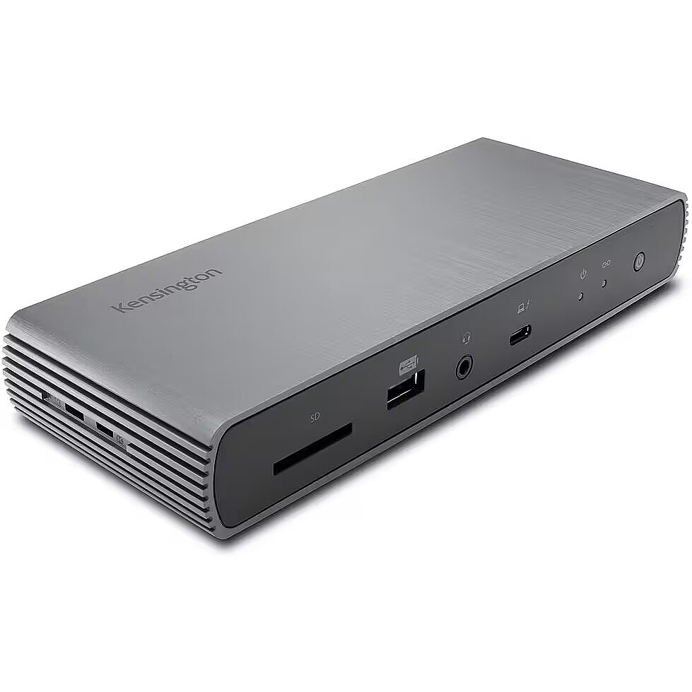 Description - First Generation SD5700T Thunderbolt 4 4K Dual Dock with 90W Power Delivery - Win/Mac offers the best of Thunderbolt now and in the future; Compatible with Thunderbolt 4-enabled Windows 10 laptops and backwards compatible with Thunderbolt 3 MacBooks running macOS 11 (Big Sur) or later, supports Thunderbolt 3, Thunderbolt 4, USB-C and USB4 accessories and provides full power, no matter how many connected devices. Features include 11 ports, single 8K @ 30Hz or up to dual 4K @ 60Hz video, 40Gbps data transfer speeds, UHS-II SD 4.0 card reader speeds, and more. Best for: Thunderbolt 4 laptops running Windows 10 and Thunderbolt 3 MacBooks running macOS 11 (Big Sur) or later. Supports single 8K video or dual 4K video. Connection technology: Thunderbolt 4 Power: supports USB-C PD 3.0 (90W laptop charging) Compatibility: Windows 10 and macOS 11 (Big Sur) or later Number of monitors supported: 2 Video ports: Thunderbolt 4 Plug & Play: Yes, the optional Kensington DockWorks software is recommended for the best connection, performance and security from your Kensington dock. System Requirements: Compatible with laptops equipped with Thunderbolt 4 ports. Warranty: 3 years Apple M1 - While this dock will work with the M1 MacBook, only one video output is supported. For multi-monitor support on the M1 MacBook, see our Hybrid USB-C DisplayLink docks (e.g.: SD4700P, SD4750P, SD4780P or SD4900P) or USB-A DisplayLink adapters (DisplayPort K33989, HDMI K33988, DVI-I K33974). Optimized for the needs of the Windows 11 dock, including support for Snap layouts and Snap groups