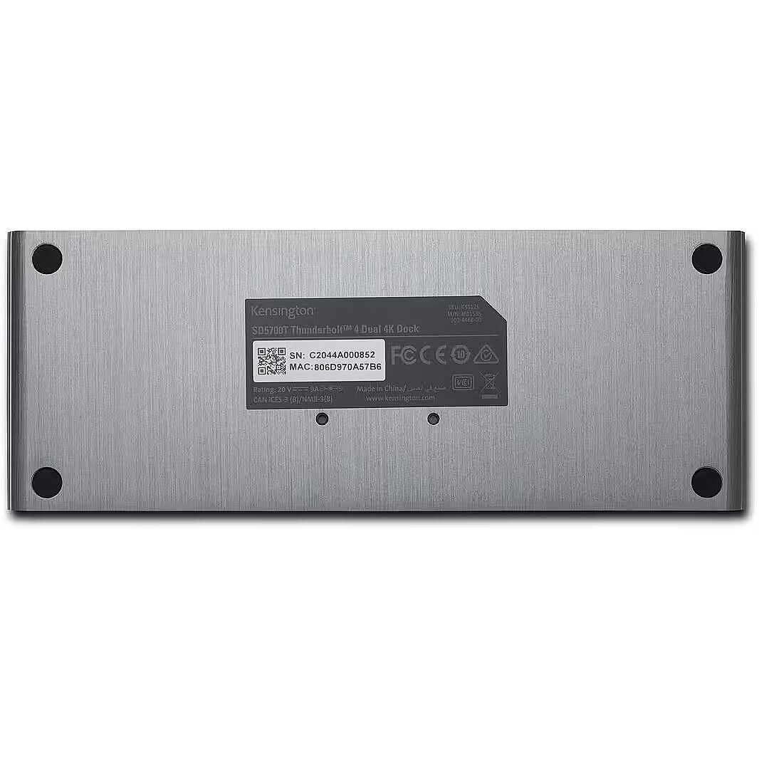 LongDesc - The first of a generation, the SD5700T Thunderbolt™ 4 Dual 4K Docking Station with 90W PD - Win/Mac offers premium Thunderbolt benefits now and well into the future; compatible with Thunderbolt™ 4-enabled Windows 10 or later laptops and backward compatibility with Thunderbolt™ 3, USB4 and USB-C devices running Windows 10 or later or macOS 11 or later, regardless of how many devices are connected. Features include 11 ports, Single 8K @ 30Hz or up to Dual 4K @ 60Hz video, 40Gbps data transfer speeds, UHS-II SD 4.0 card reader speeds and more.Best For: Thunderbolt™ 4 Windows 10 or later laptops and backward compatibility with Thunderbolt™ 3 and USB4 devices running Windows 10 or later or macOS 11 or later. Supports Single 8K or Dual 4K video.Apple M1 - While this docking station will work with the M1 MacBook, only a single video output is supported. For multi-monitor support on your M1 MacBook, see our Hybrid USB-C DisplayLink docking stations (e.g.: SD4700P, SD4750P, SD4780P or SD4900P) or USB-A DisplayLink adapters (DisplayPort K33989, HDMI K33988, DVI-I K33974).Optimised for your Windows 11 docking station needs, including support for Snap Layouts and Snap Groups.*This dock supports the Gigabit Ethernet standard which provides a maximum data rate of 1Gbps. Actual Ethernet speeds may vary depending on, but not limited to, Internet bandwidth, Ethernet cables, network switches and the hardware and firmware performance of the host computer.Connection Technology: Thunderbolt™ 4Power Delivery: Supports USB-C PD 3.0 (90W of laptop charging)Compatibility: Windows 10 or later and macOS 11 (Big Sur) or later# of Monitors Supported: 2 (M1/M2 Base Chipset MacBook or USB-C Alt Mode laptop supports only a single external display)Video Ports: Thunderbolt™ 4 portsPlug & Play: Yes, optional Kensington DockWorks™ software is recommended for the best connection, performance and security from your Kensington docking station.System Requirements: Compatible with Windows 10 or later laptops equipped with Thunderbolt™ 4 and backward compatibility with Thunderbolt™ 3, USB4 and USB-C devices running Windows 10 or later or macOS 11 or later.Warranty: 3 Years