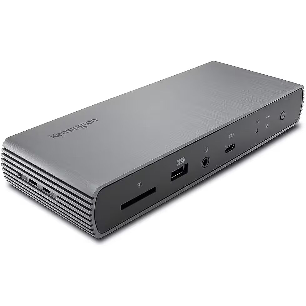 LongSummaryDescription - Kensington SD5700T Thunderbolt 4 4K Dock. Connectivity technology: Wired, Host interface: Thunderbolt 4, USB Power Delivery up to: 90 W. Ethernet LAN data rates: 1000,100,10 Mbit/s. Product colour: Grey, Compatible memory cards: SD, Data transfer rate: 40 Gbit/s. AC input voltage: 100 - 240 V, Input current: 2.5 A, Output voltage: 20 V. Width: 195 mm, Depth: 75 mm, Height: 30 mm