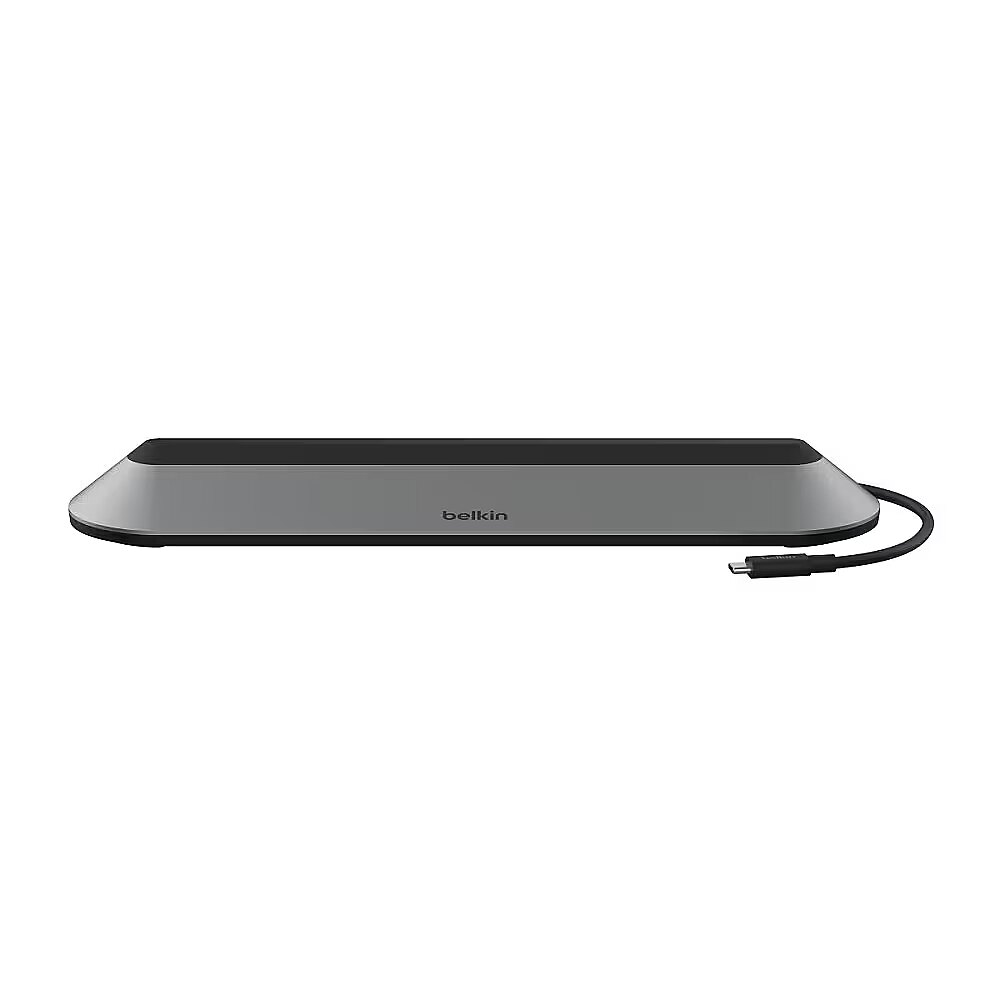 Description - Thunderbolt 4 8K USB/C USB/A HDMI SD GbE Mac/PC Docking Station Create the ultimate workstation with our Thunderbolt 4 Pro Docking Station. It has 12 ports to connect your MacBook or Windows laptop to multiple devices, video, Ethernet and power with a single Thunderbolt 4 cable. Get data transfer speeds of up to 40 Gbps that's 8 times faster than USB 3.0. Charge your laptop and other connected devices simultaneously with up to 90 watts of Power Delivery power. Immerse yourself in a smoother and clearer visual experience with the highest video resolution on up to three additional displays. The included Thunderbolt 4 cable is compatible with Thunderbolt 3, USB-C and USB4. Belkin Dock Utility device compatibility