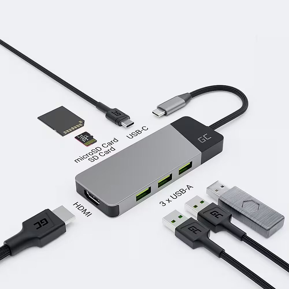 productName - GREEN CELL HUB USB-C ADAPTER GC CONNECT 7W1 (3XUSB 3.1, HDMI 4K 60HZ, USB-C PD 85W, MICROSD/SD)