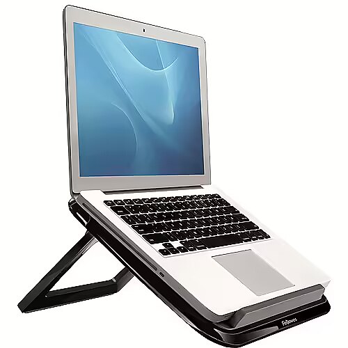 Description - I-Spire Series Laptop Quick Lift -Black Simple adjustment to seven angles Suit laptops with a limited angle of opening Foldout front legs to optimise screen positioning on any laptop up to 17” or 4.5kgs Soft touch front ledge holds the laptop in place Portable - folds flat to travel Recommended usage with an external keyboard and mouse Increases air circulation to keep your laptop cool Accredited against BS EN ISO 9241 by FIRA international, an independent Ergonomic Accreditor Specification: Angle Range: up to 100°
