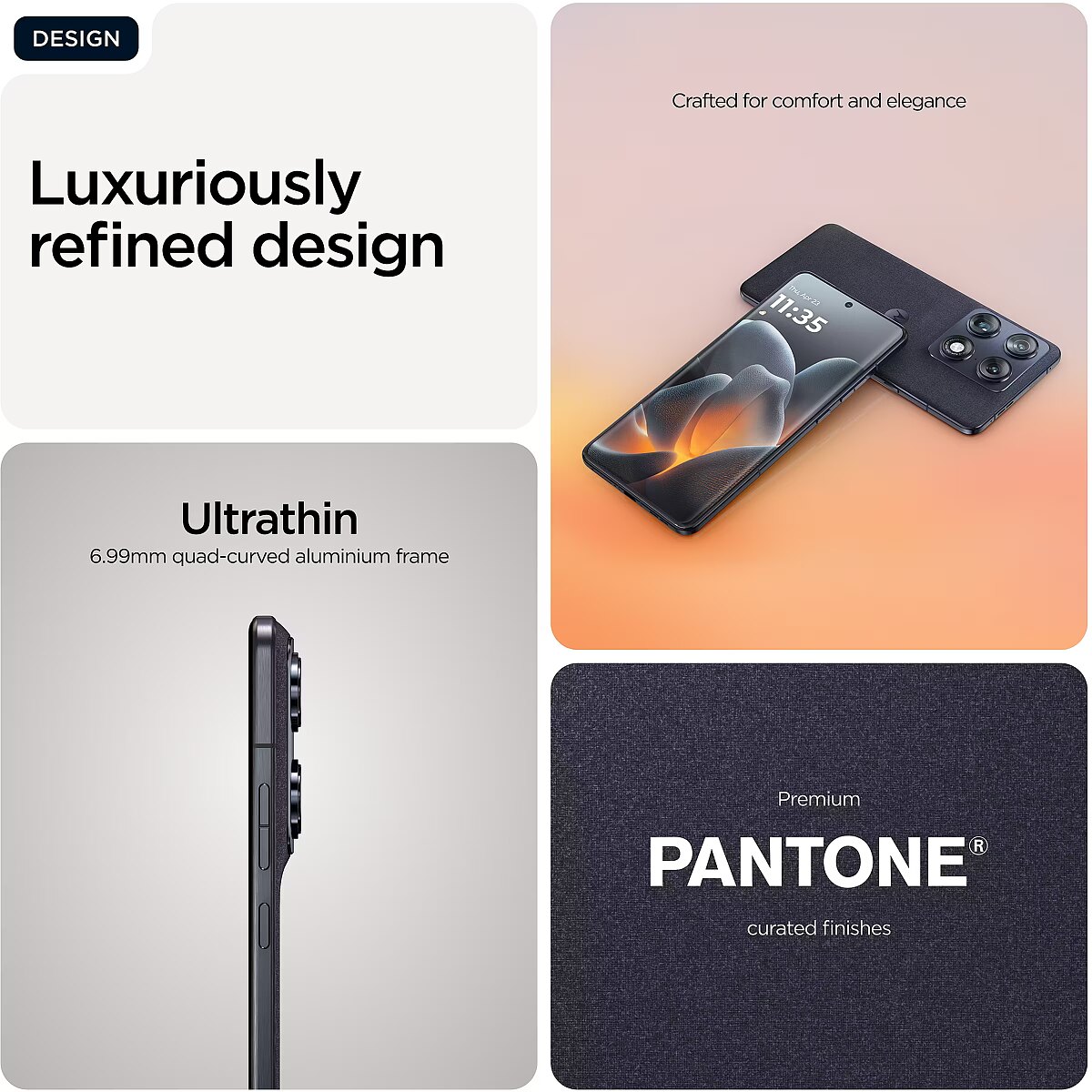 LongDesc - Luxury in every detail. Perfection in every pixel.Introducing the all-new motorola signature series, a purposeful combination of technology and design—and a true reflection of Motorola’s DNA. It starts with contoured edges and an ultrathin profile crafted to form the most sophisticated of silhouettes, while using aluminum throughout the frame for added elegance and durability. Combined with unique finishes and materials, the result is a sensory experience unlike any other. Inside, motorola signature devices offer the ultimate in performance, recognized by DXOMARK Gold Label for the highest standards of imaging excellence. Engineered with Sony LYTIA™ sensors, Dolby Vision® recording, and the next gen Snapdragon® 8 Gen 5 processor, you have all the power you need to capture moments like never before. With up to seven years of OS and security updates and exclusive concierge services, your entire experience is elevated.(1) Expect the best from motorola signature.