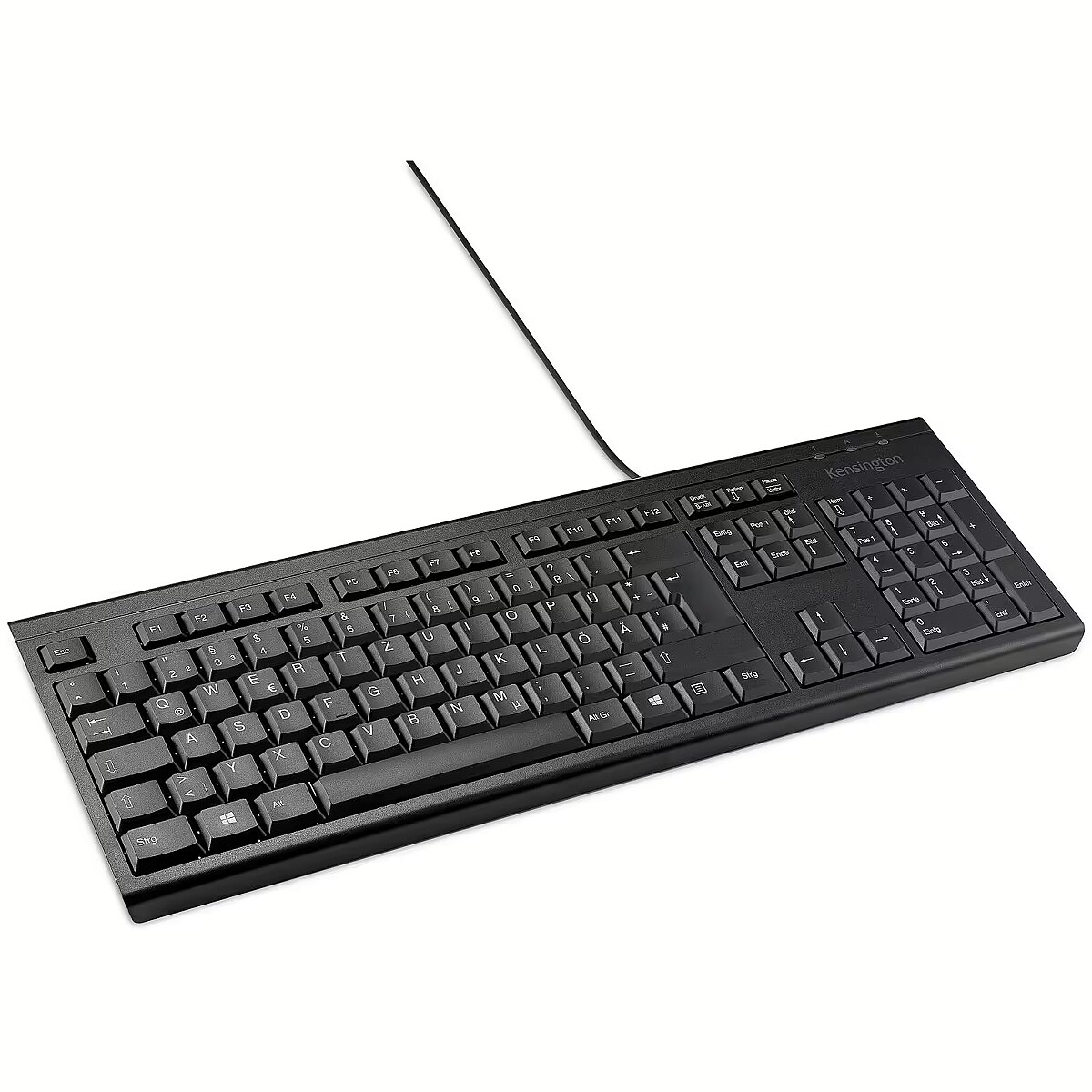 LongSummaryDescription - Kensington K63727DE. Keyboard form factor: Full-size (100%), Connectivity technology: Wired, Device interface: USB, Keyboard key switch: Membrane, Keyboard layout: QWERTZ, Recommended usage: Home/Office. Product colour: Black