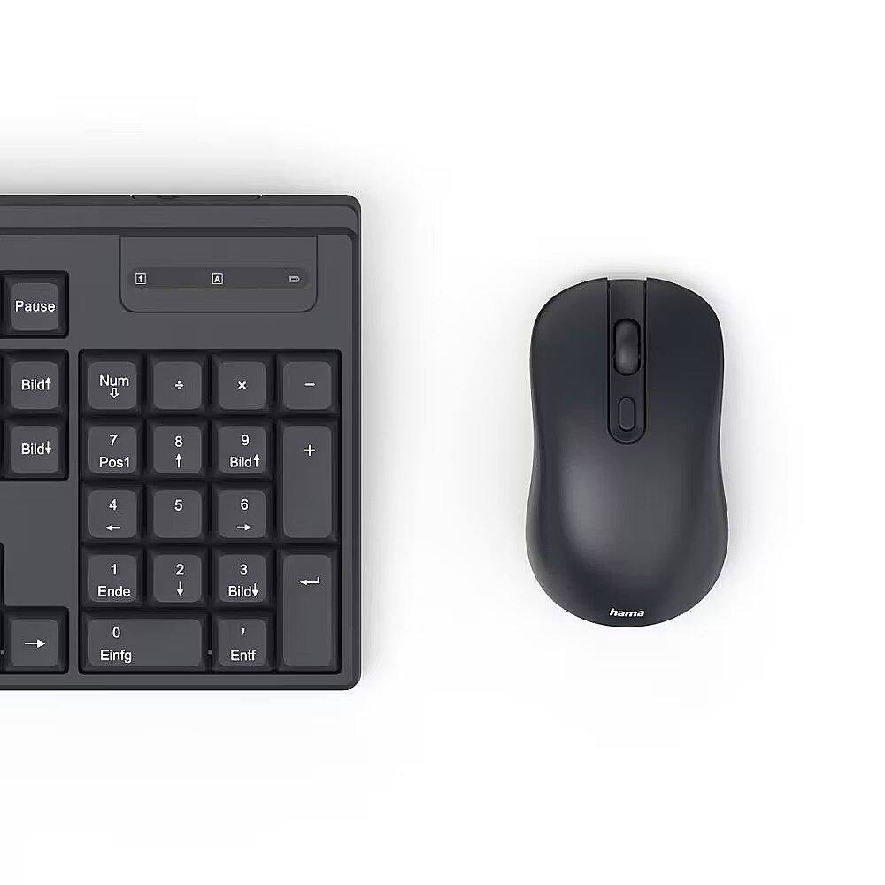 Hama WKM-200 juhtmeta klaviatuuri ja hiire komplekt on mugav lahendus arvutiga töötamiseks ja mängimiseks. Stabiilne ja kindel 2,4 GHz raadioside USB-A vastuvõtja kaudu tagab kuni 10 meetri ulatuse. Komplekt töötab AA patareidega, seega ei pea sa laadimist meeles pidama.