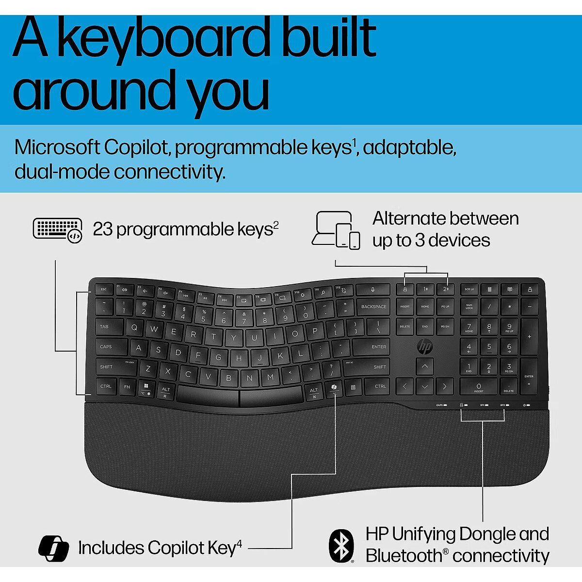 ShortSummaryDescription - HP 680 Comfort Dual-Mode Keyboard, Full-size (100%), Wireless, RF Wireless + Bluetooth, QWERTY, Black