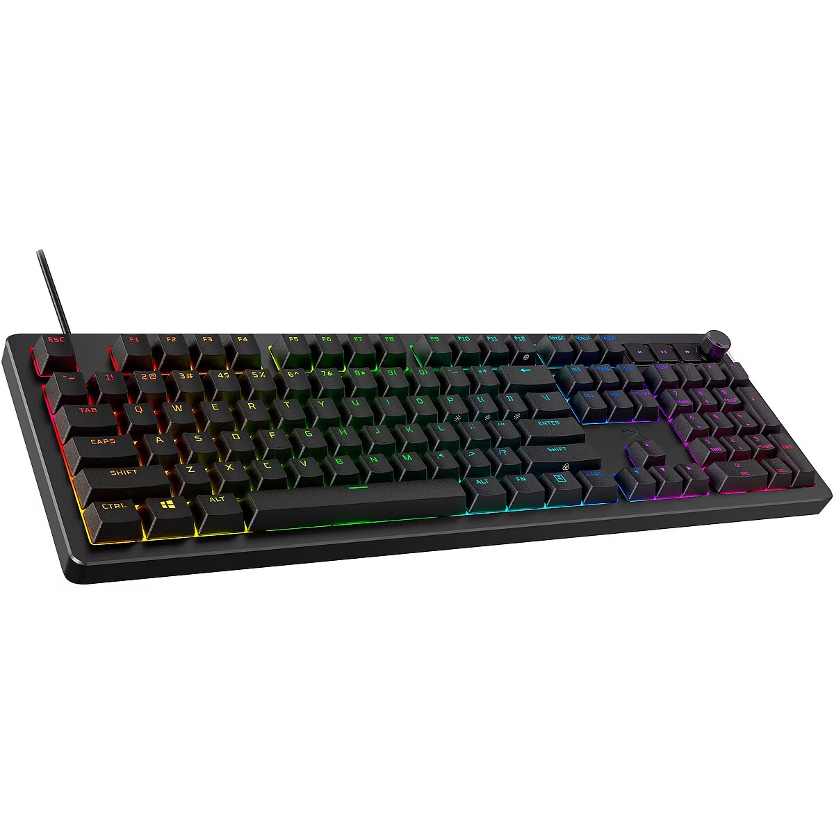 Gasket-mount construction and pre-lubed HyperX Linear switches offer a soft, quiet, and consistent typing experience. PBT keycaps provide durability and resistance to wear.