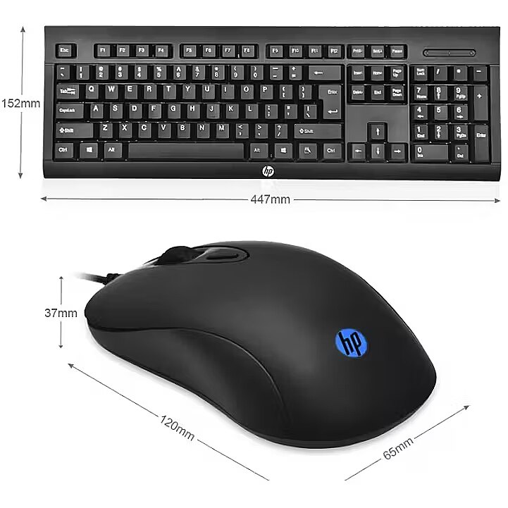 description_en - HP KM100 USB Wired Keyboard & 1600 dpi Mouse Combo for PC, Laptop, Mac Features: Elegant and minimalist design;