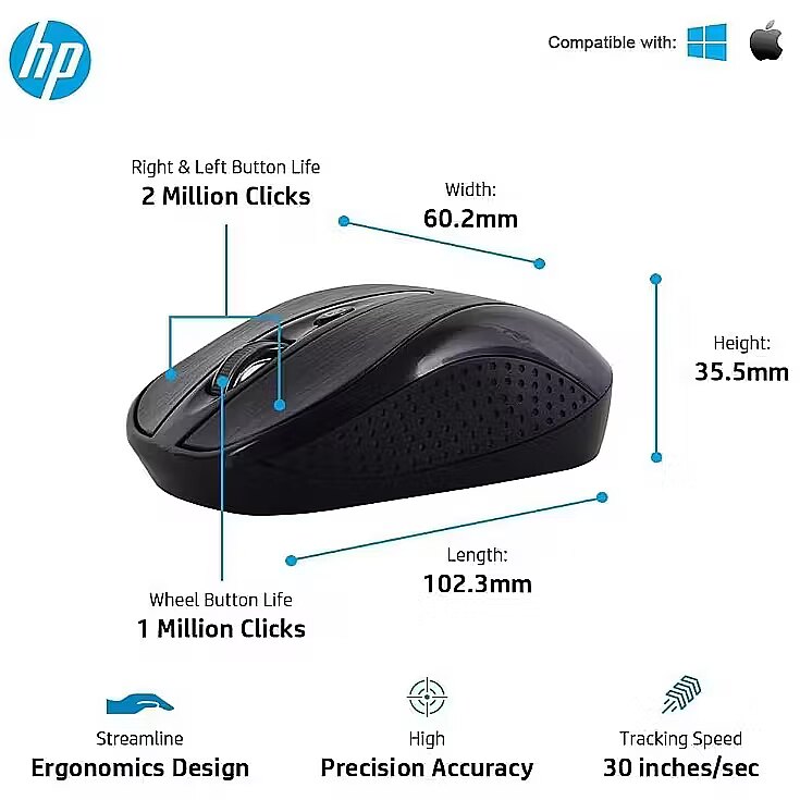 Optical Mouse with 1600 dpi Resolution: Ensures accurate and smooth cursor movement for efficient work. The HP CS10 combo is compatible with various operating systems and is ideal for everyday use at home or in the office.