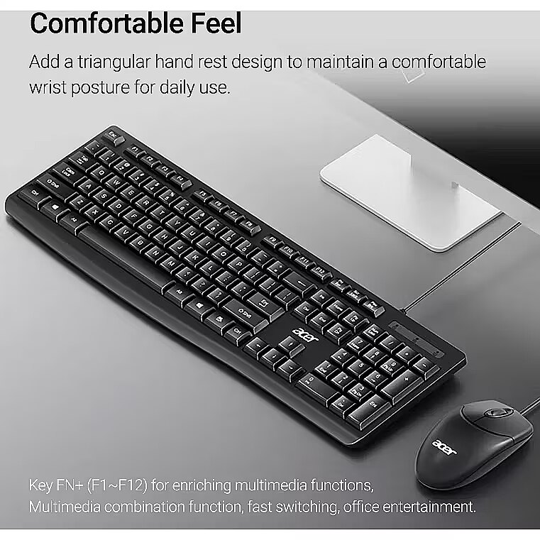 description_en - The Acer OAK040 is a wired set that includes a keyboard and mouse, designed for use with desktop and laptop computers. Both devices connect via a USB interface, ensuring a reliable and stable connection.