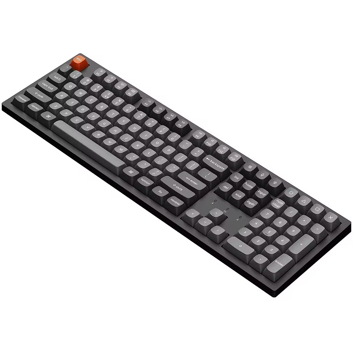 Summary - Keychron K10 Max QMK. Keyboard form factor: Full-size (100%). Keyboard style: Straight. Connectivity technology: Wired & Wireless, Device interface: USB + RF Wireless + Bluetooth, Keyboard key switch: Mechanical, Keyboard number of keys: 108. Backlight type: RGB LED. Recommended usage: Universal. Product colour: Black