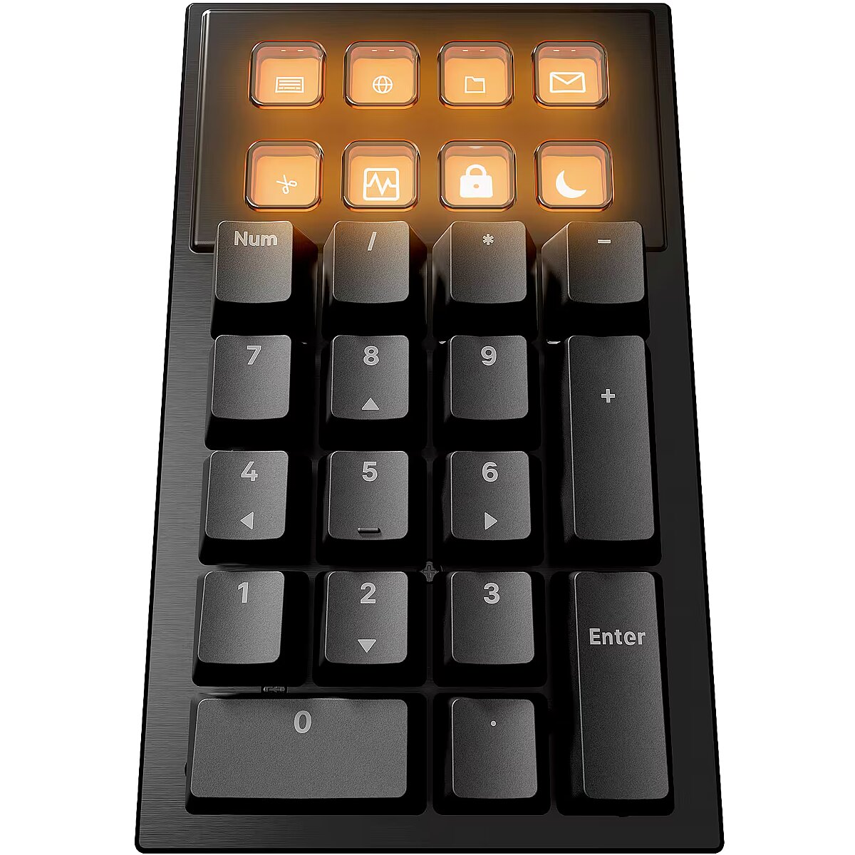 LongDesc - Keys to excellenceThe Dark Mount modular keyboard delivers an uncompromising set of features, like 8 Displays Keys and a Media Dock.