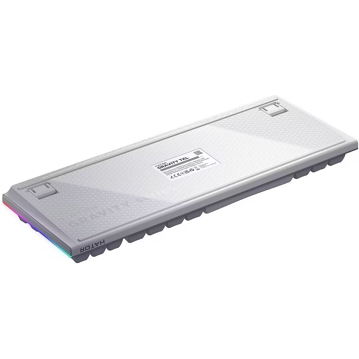 LongSummaryDescription - HATOR Gravity TKL. Keyboard form factor: Tenkeyless (80 - 87%), Connectivity technology: Wired, Device interface: USB, Keyboard key switch: Mechanical, Keyboard layout: QWERTY. Backlight type: RGB LED. Cable length: 1.8 m. Recommended usage: Gaming. Product colour: White