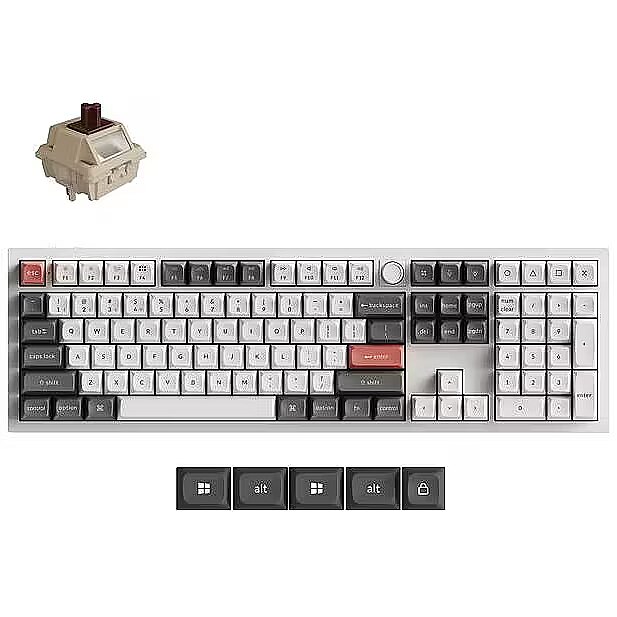 Summary - Keychron Q6 Ultra 8K. Keyboard form factor: Full-size (100%). Keyboard style: Straight. Connectivity technology: Wired & Wireless, Device interface: USB + RF Wireless + Bluetooth, Keyboard key switch: Mechanical. Backlight type: RGB LED. Recommended usage: Universal. Product colour: White
