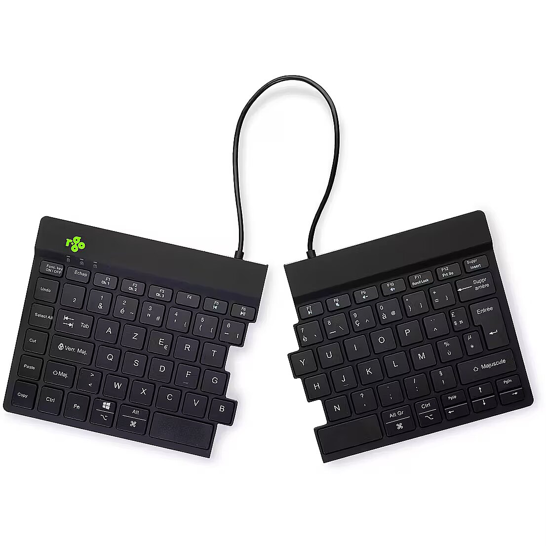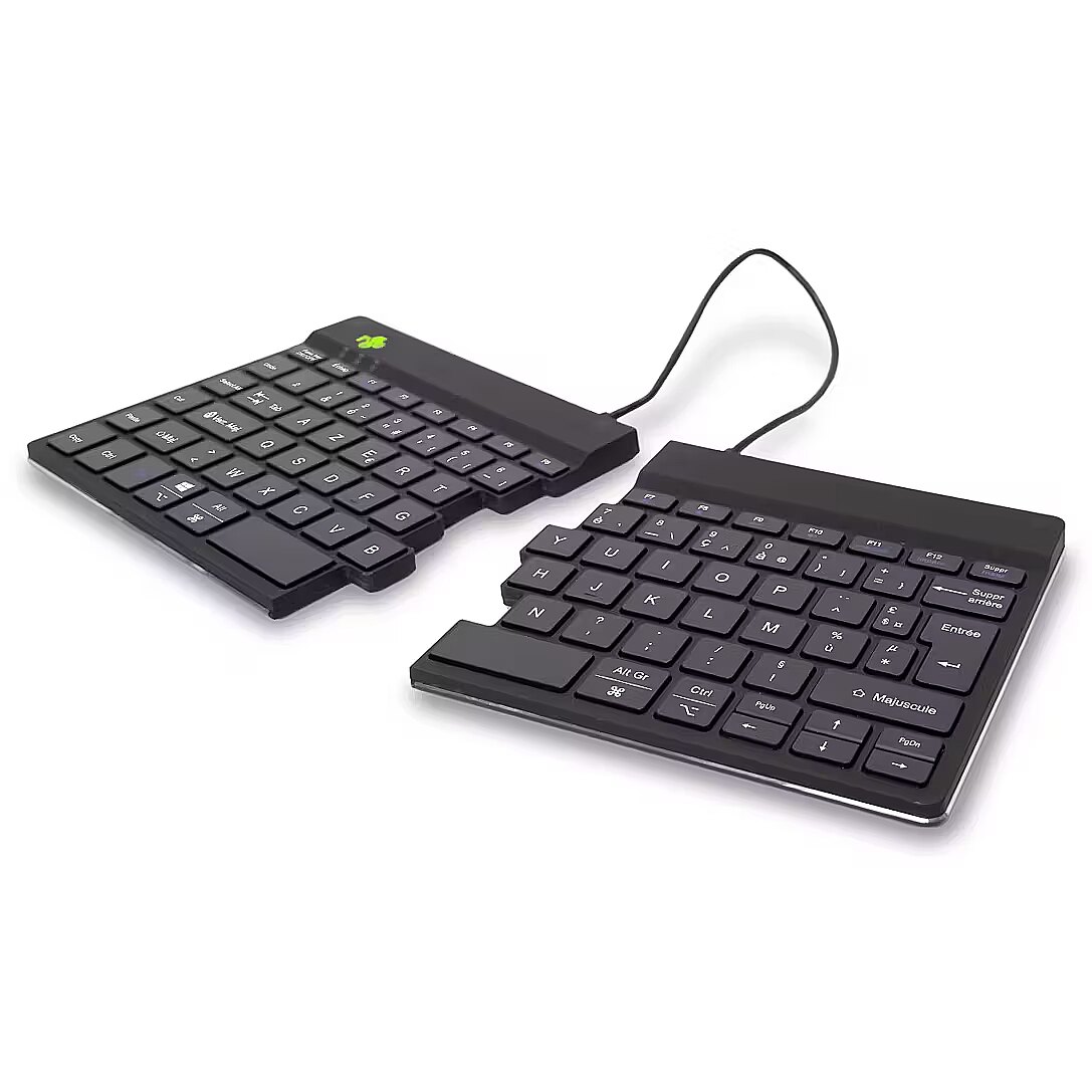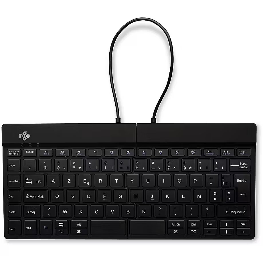 Lühikokkuvõte - R-Go Tools ergonoomiline klaviatuur R-Go Split Break koos Break-tarkvaraga, ergonoomiline kaheosaline klaviatuur, AZERTY (FR), Bluetooth, must, Mini, juhtmeta, Bluetooth, käärklõpsuga klahvid, AZERTY, must