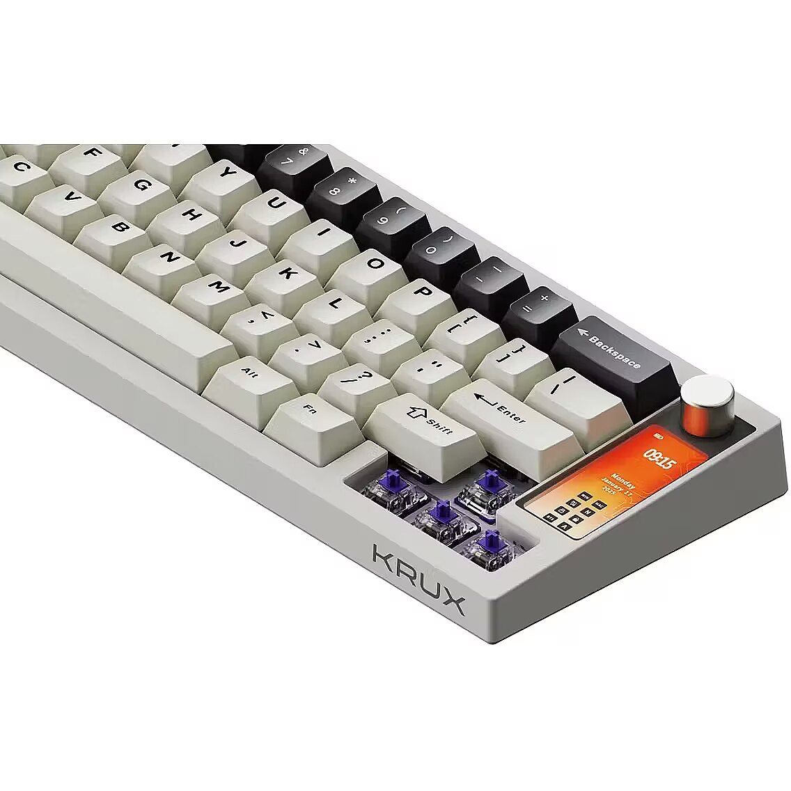 Lühikirjeldus - Krux Drox on juhtmeta mehaaniline klaviatuur kompaktse 65% paigutusega, millel on mitmeotstarbeline nupp ja animatsioone toetav ekraan.