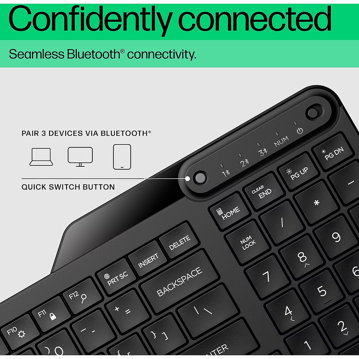 Life is better when you have options. Seamless Bluetooth functionality gives you the freedom to stay continuously and confidently connected anywhere you are. Connected to a desktop, your tablet, or even a mobile device, this multi-device Bluetooth keyboard delivers connectivity across multiple operating systems. With Swift Pair, quickly switch between up to three devices with the press of a button.