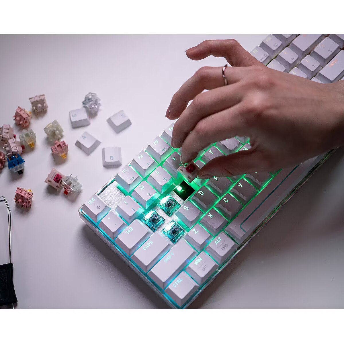 Pikk tootenimi - TKL (80%), magnetiline, 2,4 GHz/Bluetooth/USB, RGB, 88 klahvi, valge