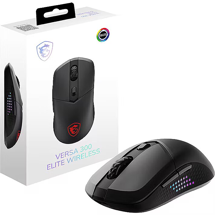 MSI's exclusive MSI Center software helps you get the most out of your MSI peripheral products. Enable your experience in real-time with just a few clicks. ERGONOMIC & SUPPORTIVE HANDSHAPE - The ergonomic chassis design is ideal for all hand sizes, optimizing grip to enhance palm support and provide comfort during extended sessionsULTRA-LIGHTWEIGHT COMFORT - Weighing just 65g, VERSA 300 ELITE WIRELESS is perfect for fast-paced gaming with effortless movement, enhancing both agility and accuracyPERFECT PRECISION - Designed to dominate gameplay, the PixArtPAW3395DM optical sensor offers up to 26,000 DPI and a 1000Hz polling rate, making it a formidable tool in skilled handsVERSATILE CONNECTIVITY - Choose MSI SWIFTSPEED 2.4G wireless, Bluetooth, or wired mode for stable, low-latency gaming performanceUP TO 200 HOURS OF FAST-PACED AIMING - Enjoy up to 200 hours of playtime on a single charge and keep gaming with the advantage of a long lifespan and increased stabilityMSI DIAMOND LIGHTGRIPS - Featuring anti-slip surface, MSI Diamond LightGrips allow gamers to hold the mouse firmly in hand for precise maneuvers, with fully customizable RGB illumination