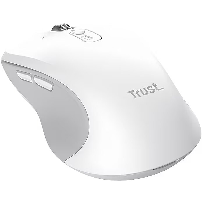 LongSummaryDescription - Trust 25674. Form factor: Ambidextrous. Device interface: Bluetooth, Movement resolution: 3200 DPI, Buttons quantity: 9, Scroll type: Wheel. Power source: Batteries. Product colour: White