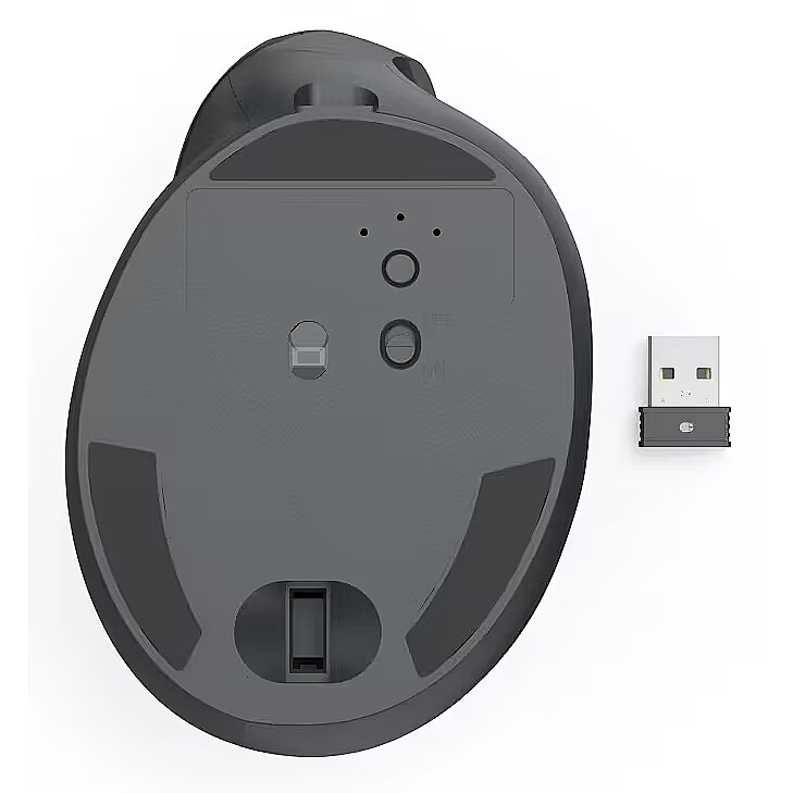 LongDesc - Convenient, precise and silent: The vertical, ergonomic mouse with 8 buttons and scroll wheel allows right-handed people to work enjoyably and without pain on the PC or laptop - and not just wirelessly, but rechargeably tooVertical mouse for ergonomic workingBye bye mouse arm: the ergonomic mouse supports a natural angle between the hand and wrist at an ergonomic workstation, thereby preventing shoulder pain, tendon sheath inflammation and pain in the wristMouse with Bluetooth and radioReady to go anywhere: the multi-device mouse has 1 radio and 2 Bluetooth channels and can therefore be connected to up to 3 devices simultaneously, switching between them with lightning-fast speed at the press of a buttonWireless mouse with rechargeable batteryPowerful and rechargeable: the integrated lithium polymer battery in the wireless mouse guarantees maximum flexibilityAI assistant for many programsMore productive with artificial intelligence: Assist button activates the cross-program AI assistantWhisper-quiet buttonsQuiet mouse, no clicking noises: whisper-quiet buttons ensure undisturbed and relaxed working with the wireless mouseBrowser buttonsHandy side buttons: the browser buttons on the wireless mouse support the forward/back function for easy navigation, e.g. in web browsers, Outlook, etc.USB receiver can be stowedA place of its own: the stowable USB receiver can be transported in a space-saving manner inside the mouse housing> 20% from demonstrably recycled sourcesAnd so the circle closes: this product is made up of at least 20% recycled materials, enabling us to take part in an eco-friendly cyclePlastic-freePackaging with a clear conscience: our packaging is 100% plastic-free, enabling us to reduce plastic waste and increase its recyclability