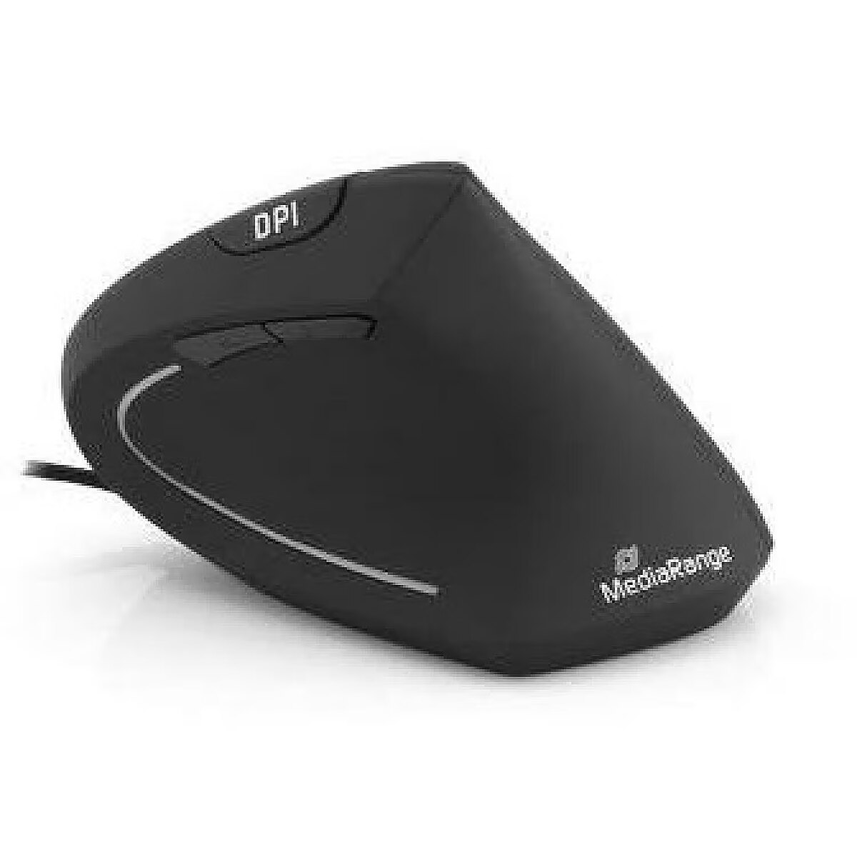 Description - MediaRange Corded ergonomic 6-button optical mouse for right-handers, black MediaRange ergonomic input devices are ideal for all applications in the office or at home. Our ergonomically shaped, optical 6-button mouse can be connected quickly and easily via USB connection and, thanks to Plug & Play, is compatible with all common operating systems and ready for immediate use. The vertical shape of the mouse ensures that you bring your forearm and wrist into a natural position. This position relaxes the muscles in your hand, forearm and furthermore in the shoulder girdle. Thanks to the comfortable thumb rest and the generous thumb recess, you always have a comfortable grip position. Especially when working long hours in the office or at home, the relief provided by an ergonomic mouse pays off. You can prevent or reduce pain in the wrist, elbow and shoulder joint and their muscles. The following diseases can be prevented by holding the hand vertically: - carpal tunnel syndrome - Epikondylitis radialis humeri - Hardening in the shoulder and neck region Model: Ergonomic 6-button optical mouse, corded; for right-handers Resolution: 800, 1200, 1600 and 2400 dpi Connection: USB 2.0 Connection cable; 1.7m cable length Rating: DC 5V - 70mA (max.); USB bus-powered 5 buttons incl. Scroll wheel Compatible with Windows, Mac and Linux; Plug & Play Sensor, resolution and responsiveness: Optical sensor with 800, 1200, 1600 and 2400 dpi; adjustable via DPI switch button; max. acceleration: 8G; max. speed: 25 IPS; USB report rate: 125Hz Durability: Mouse buttons (left/right) more than 3.000.000 clicks Color: black Dimensions: 125 x 65 x 80mm Weight: ± 108g
