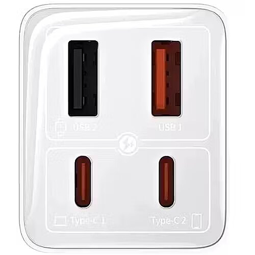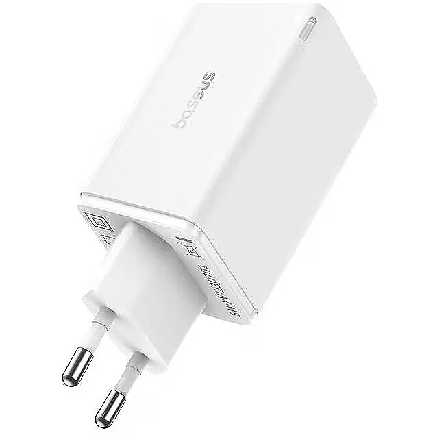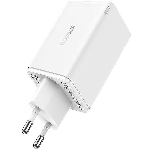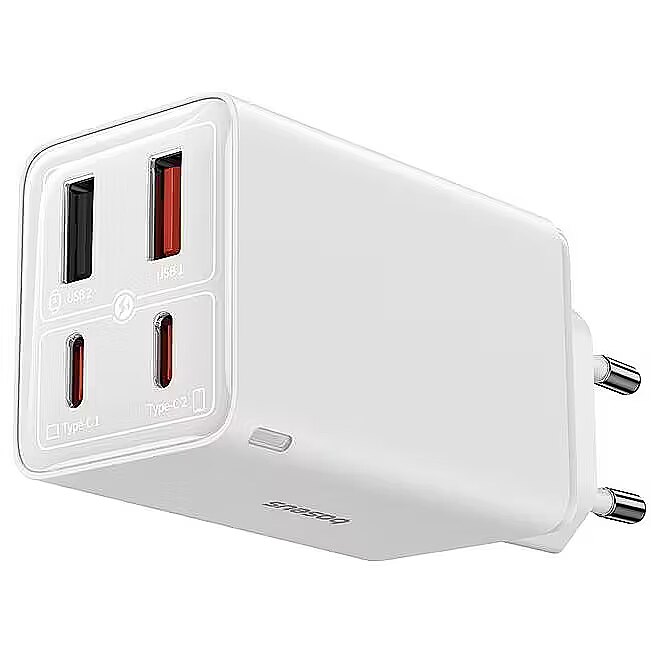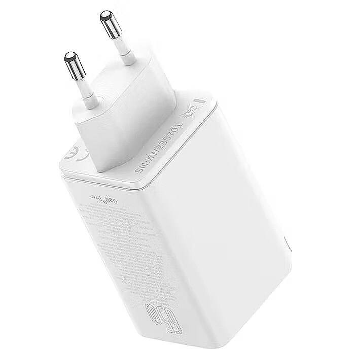 description_en - The Baseus GaN6 Pro 2xUSB-C + 2xUSB 65W Charger in White is a powerful and versatile charging solution for all your devices. Utilizing advanced GaN (Gallium Nitride) technology, it delivers a high 65W power output while being significantly smaller and generating less heat compared to traditional chargers. This adapter features four ports – two USB-C and two USB-A, allowing you to simultaneously charge up to four devices, whether it's a laptop (up to 65W via USB-C), tablet, smartphone, or other gadgets. Support for multiple fast charging protocols, such as Power Delivery (PD) and Quick Charge (QC), ensures maximum speed and efficiency. Its compact design makes it an ideal companion for travel and daily use, helping to reduce the number of chargers you need.