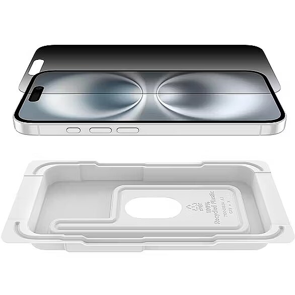 Description - ScreenForce Invisiglass Privacy iP 16/15/14Pro Full-screen privacy filter for added security Up to 62% stronger than tempered glass Reinforced with ion exchange technology Scratch resistance 9H pencil hardness Made from 60% recycled glass 0.29mm thin Easy Align tray for easy, precise, bubble-free application Flat, full screen coverage, compatible with smooth-edged cases Crystal-clear display Native touchscreen experience Anti-fingerprint coating protects screen from smudges Anti-bacterial coating prevents discoloration 100% recycled plastic packaging