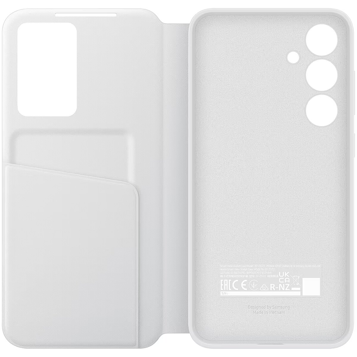 LongSummaryDescription - Samsung Smart View Wallet Case for S24 FE. Case type: Wallet case, Brand compatibility: Samsung, Compatibility: Galaxy S24 F, Maximum screen size: 17 cm (6.7"), Surface coloration: Monochromatic, Product colour: White, Number of card pockets: 1