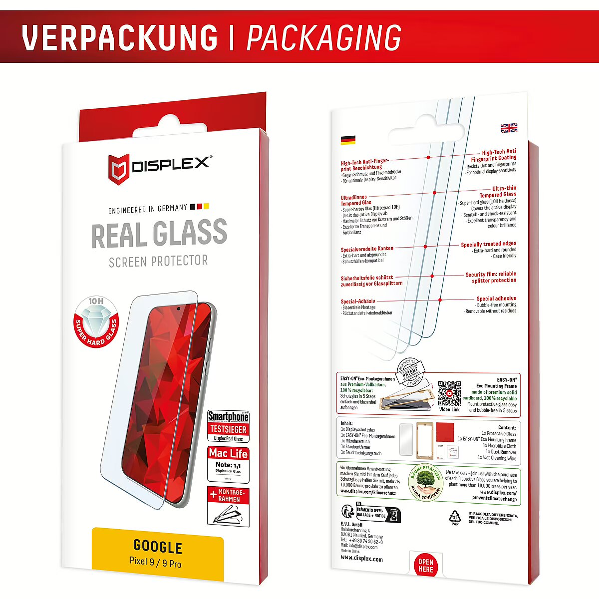 Displex Panzerglas 2D/ Clear (10H) für Google Pixel 9/9 Pro Eco-Montagerahmen, Tempered Glas, kratzer-resistente Schutzfolie, hüllenfreundlich