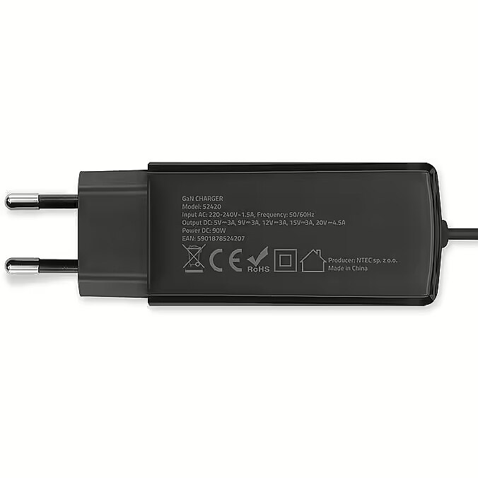 Qoltec 90W GaN charger 5V 20V 3A 4.5A USB C 3.1