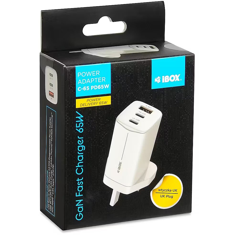 productName - iBOX C-65 White, GaN 65W universal charger UK plug