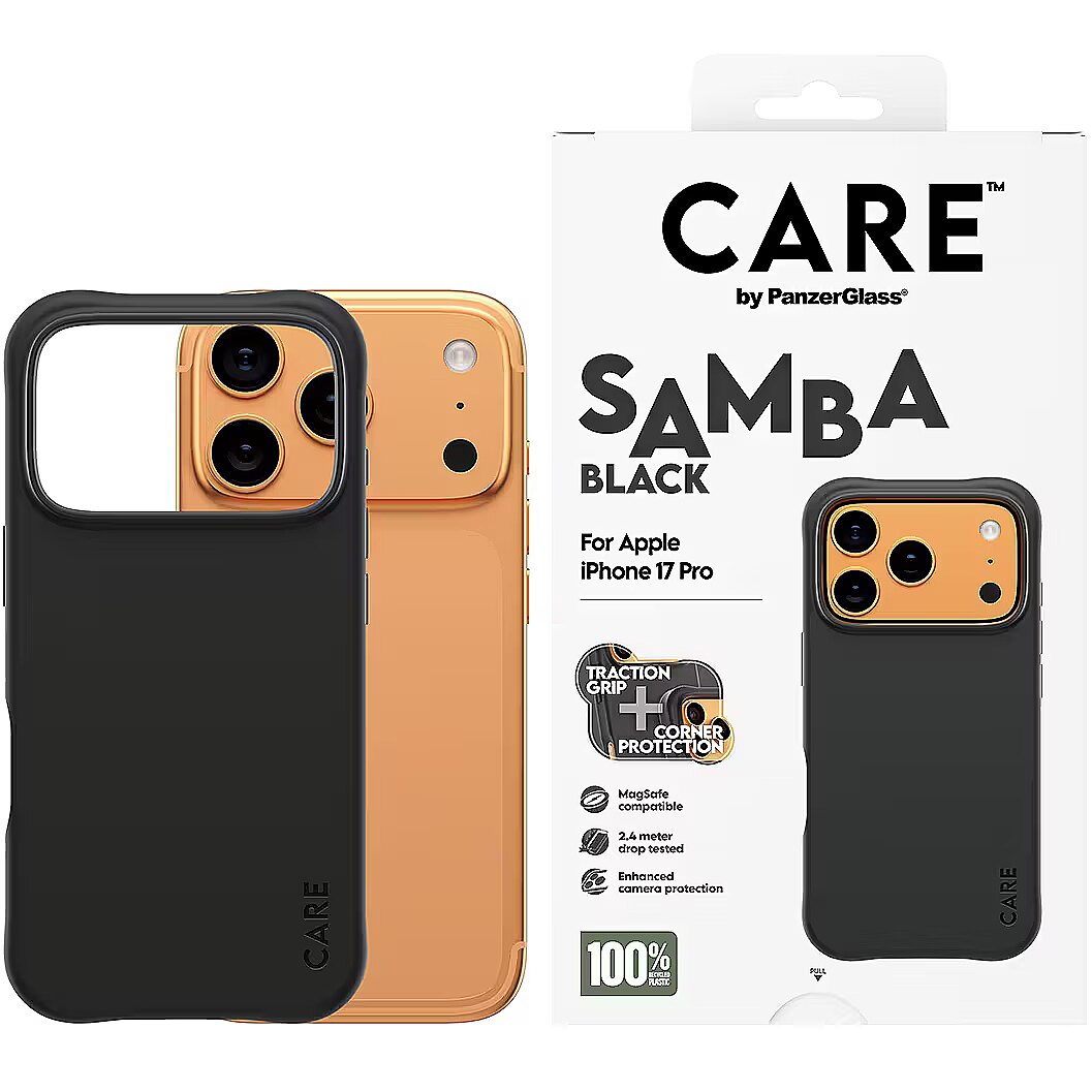 Lühikokkuvõte - PanzerGlass CARE™ by ® Samba kate must, MagSafe iPhone 17 Pro, kate, Apple, Apple - iPhone 17 Pro, must