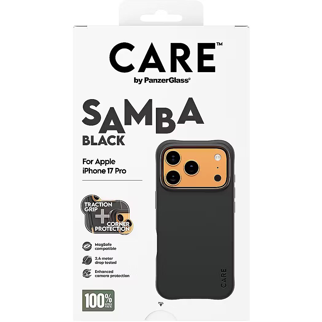 LongSummaryDescription - PanzerGlass CARE™ by ® Samba Case Black w. MagSafe iPhone 17 Pro. Case type: Cover, Brand compatibility: Apple, Compatibility: Apple - iPhone 17 Pro, Surface coloration: Monochromatic, Product colour: Black