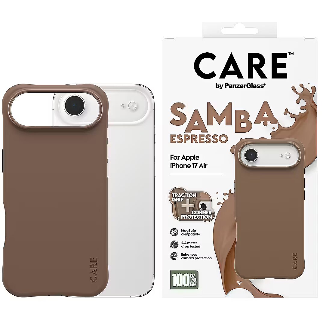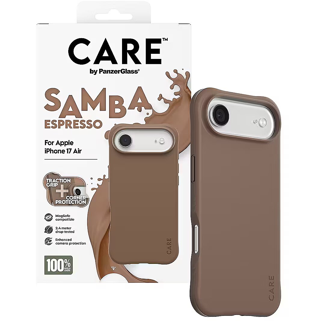 LongSummaryDescription - PanzerGlass CARE™ by ® Samba Case Espresso w. MagSafe iPhone Air. Case type: Cover, Brand compatibility: Apple, Compatibility: Apple - iPhone Air, Surface coloration: Monochromatic, Product colour: Brown