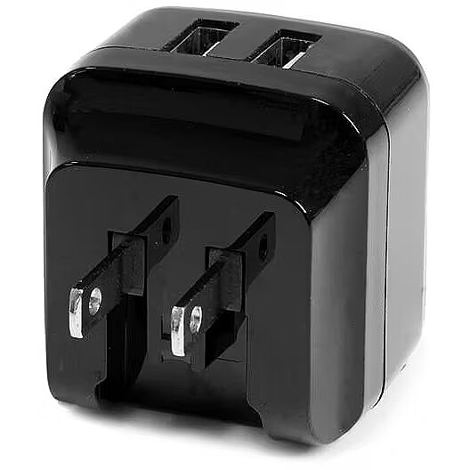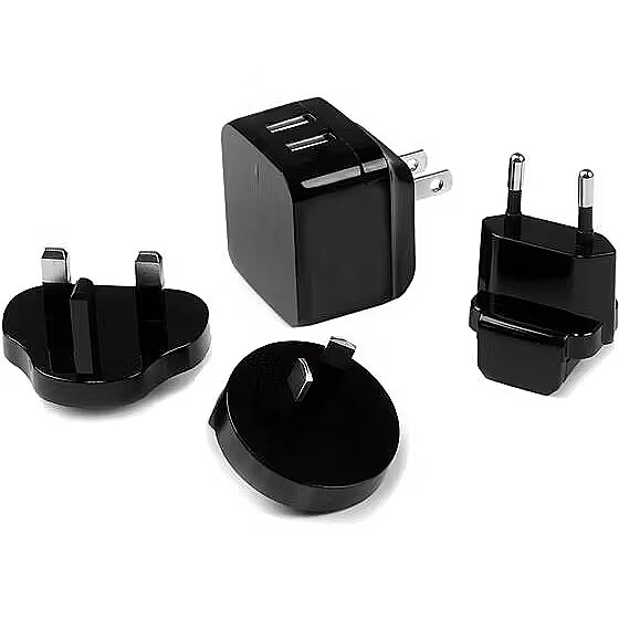 LongDesc - Charge your tablet and your phone simultaneouslyPlanning an international business trip or vacation? Now you can keep your mobile devices charged while you're away, without having to worry about whether or not the adapter you use at home will work overseas. The versatile travel charger ships with interchangeable power plugs that let you plug in and charge your devices nearly anywhere you go around the world. Plus, you can charge two of your devices at the same time. This dual-port USB wall charger lets you charge two mobile devices at once, using a single USB wall charger, so you won’t have to wait until one of your devices is fully charged before charging another.International travel – universal power adapterThe wall charger includes a universal power adapter, which lets you plug in to any electrical socket almost anywhere in the world. So, no matter where you are travelling to, you can rest assured that you’ll be able to keep your mobile devices charged and ready to use.Simultaneous charging – dual USB charge portsWith one 1A port for charging your smartphone or iPhone, and a 2.4A port for charging your iPad or other tablet, you’ll always have the necessary charging power for your mobile devices. Whether you’re charging two phones at the same time or charging a phone and a tablet, you can ensure all of your mobile devices are ready when you need them.Compact and lightweight – portable designThe portable USB wall charger features a folding North American plug that tucks away nicely to fit inside your laptop bag, purse, backpack or other carrying case, making it the perfect mobile accessory for any carry-on. Plus, you can easily throw in the correct international plug for your destination and you’re all set to go.Once you land you can swap out the plugs and be ready to charge in the airport, in your hotel room or just about anywhere you can find a wall outlet.  The USB2PACBK is backed by our 2-year warranty to ensure dependable performance.Note: Some mobile devices such as certain Samsung and BlackBerry devices use proprietary power connections which are not compatible with aftermarket chargers. Please consult the manufacturer's documentation to ensure compatibility with the USB2PACBK.The StarTech.com Advantage- Plug in and charge your devices almost anywhere in the world- Ensure all your mobile devices are charged and ready when you need them- Compact design fits nicely into any carrying case