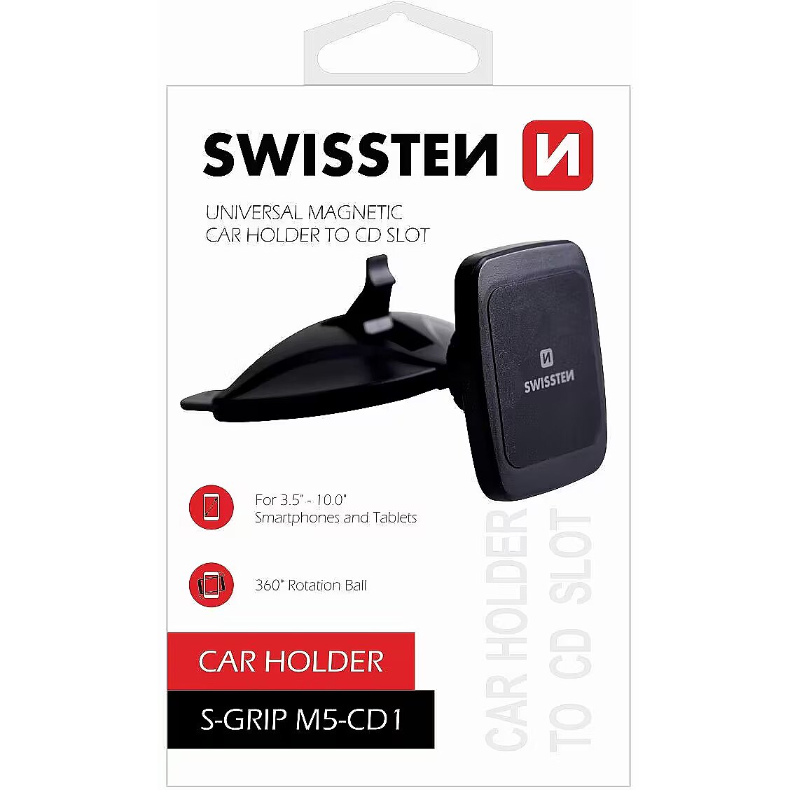 description_en - The magnetic car holder SWISSTEN S-GRIP M5-CD1 is designed for installation in the CD player slot. The holder is made up of 6 strong magnets to ensure that your tablet or smartphone holds firmly. Packed in Swissten blister.