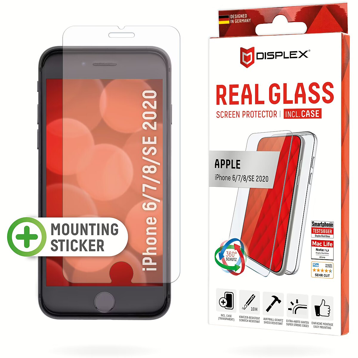 LongProductName - DISPLEX Screen Protector (10H) + Case for Apple iPhone 7/8/SE (2020/2022), Mounting Sticker, + Case, Tempered Glass, scratch resistant protective film