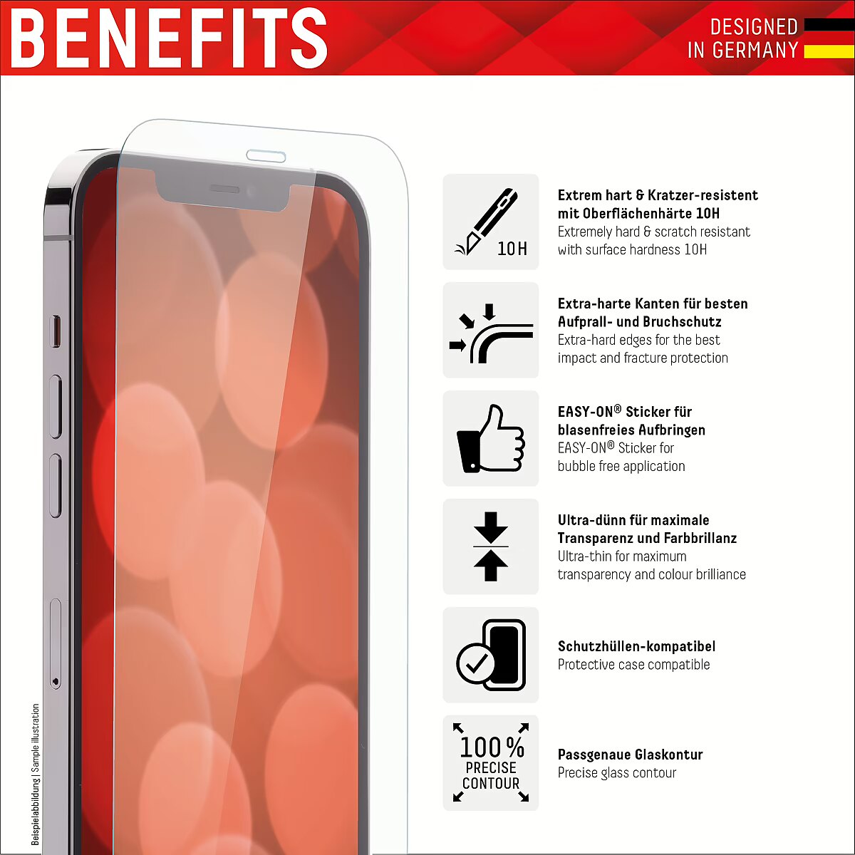 ShortSummaryDescription - Displex Screen Protector (10H) + Case for Apple iPhone 7/8/SE (2020/2022), Mounting Sticker, + Case, Tempered Glass, scratch resistant protective film, Apple, iPhone 6/ iPhone 7/ iPhone 8/ iPhone SE (2020/2022), Dry application, Impact resistant, Scratch resistant, Dust resistant, Transparent, 1 pc(s)