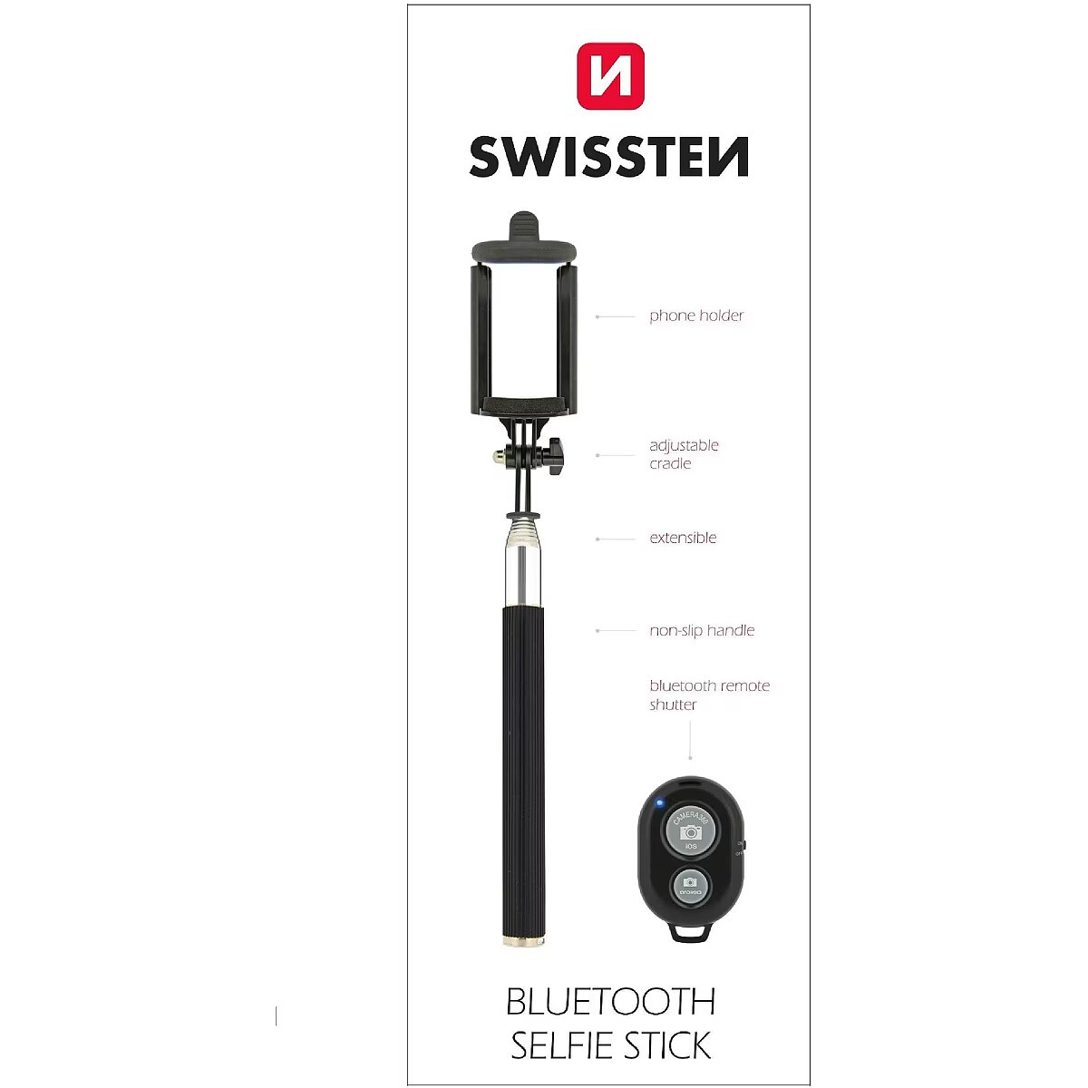 Swissten Bluetooth Selfie Stick For Mobile Phones and Cameras With Remote Control Black