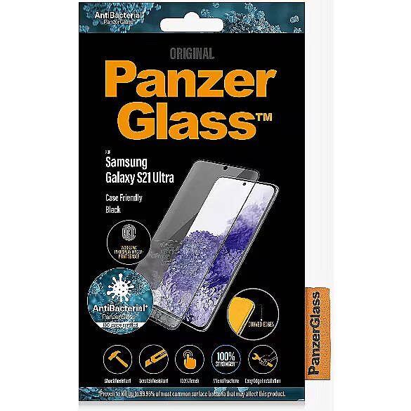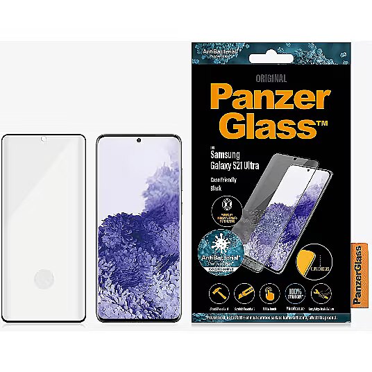 Name - PanzerGlass | Samsung | Galaxy S21 Ultra Series | Antibacterial glass | Black | Case Friendly, Compatible with the in-screen fingerprint reader | Antifingerprint screen protector