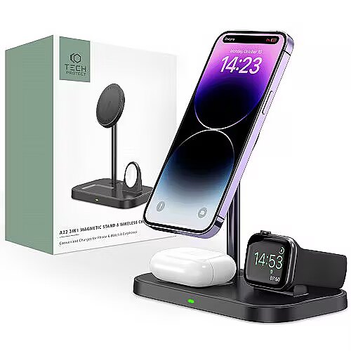 Tech-Protect wireless charger QI15W A22 3in1 Magnetic MagSafe, black