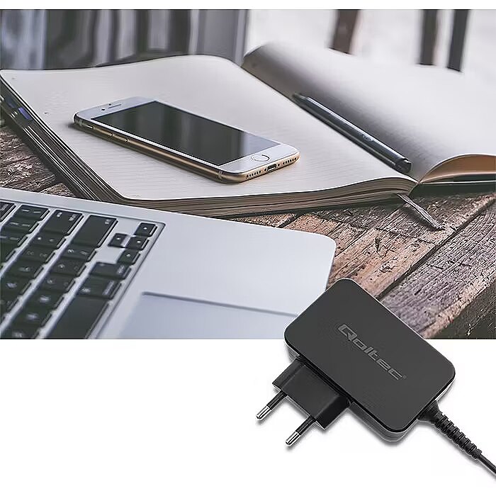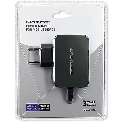 The Qoltec brand charger uses advanced POWER DELIVERY technology that adapts to the connected equipment, precisely setting the maximum voltage and current required. POWER DELIVERY technology uses the USB-C connector .