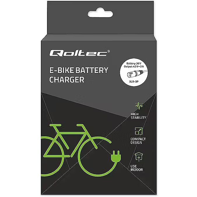 Nimi - Qoltec Elektrilise jalgratta laadija 36V | 42V | 2A | 3P XLR-18mm + toitekaabel