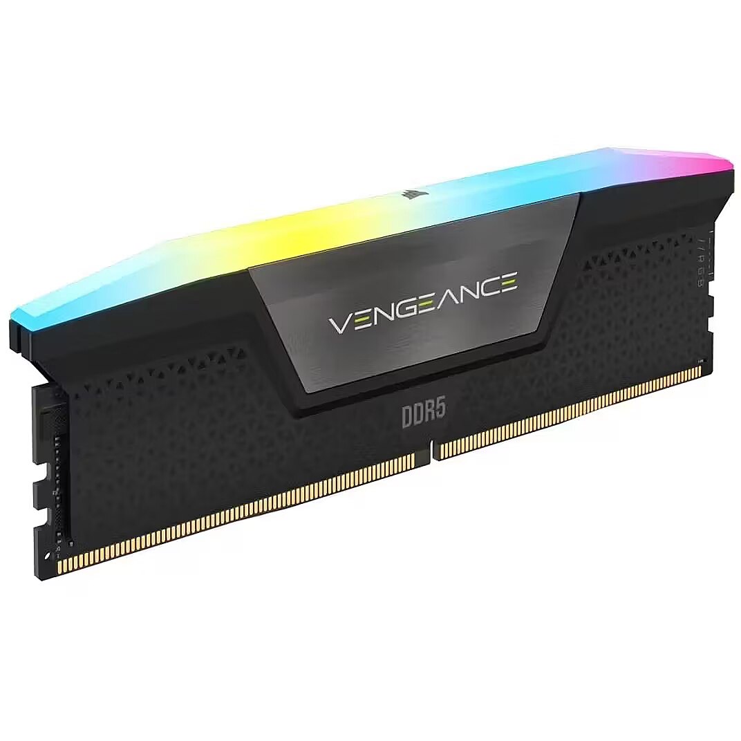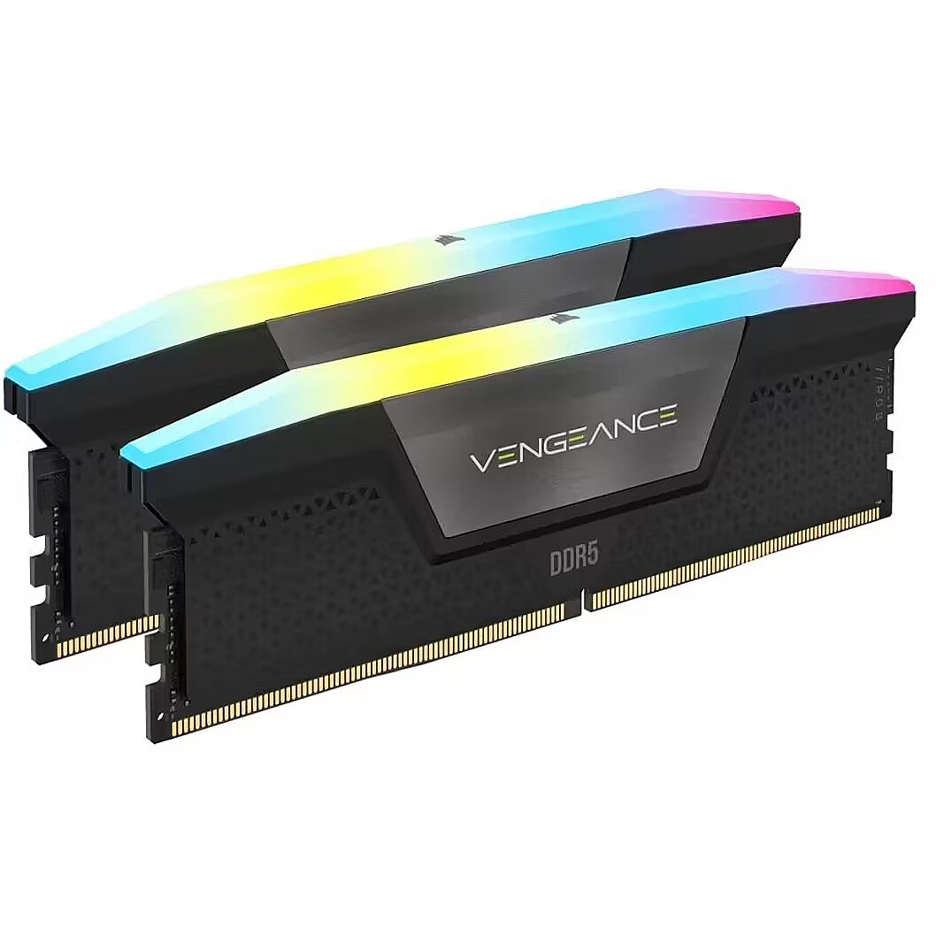 Description - DDR5 Vengeance RGB CORSAIR VENGEANCE RGB DDR5 memory delivers DDR5 performance, higher frequencies, and greater capacities optimized for Intel motherboards while lighting up your PC with dynamic, individually addressable ten-zone RGB lighting. Tightly screened high-frequency memory chips enable faster processing, rendering, and buffering than ever, with onboard voltage regulation for easy, finely controlled overclocking. Take control with CORSAIR iCUE software and enable RGB lighting customization, real-time frequency monitoring, onboard voltage regulation, and Intel XMP 3.0 profile customization. A custom PCB provides superb signal quality for high performance and stability on the latest Intel DDR5 motherboards. For cutting-edge DDR5 performance with mesmerizing RGB lighting, VENGEANCE RGB DDR5 lights the way.