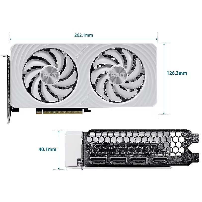 Kirjeldus - Tee oma tulevik heledamaks: mängud ja looming Palit GeForce RTX 5060 White pakub klassikalist jahutusvõimsust puhtas, modernses, valges disainis. Kaks 95 mm ventilaatorit tagavad kõrge jahutusvõimsuse ja madala mürataseme, kõik kompaktse 2-slotiga korpuses, mis sobib ideaalselt väikestesse korpustesse. Vastupidav valge tagapaneel rõhutab nii konstruktsiooni kui ka stiili.