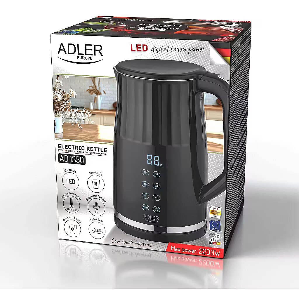 Description - Advanced Technology for Your Kitchen: Discover the Adler AD 1350 Kettle, combining modern design with cutting-edge technology to deliver comfort and efficiency in every kitchen. This electric kettle with adjustable temperature control lets you set the water temperature from 40°C to 100°C, making it perfect for preparing different types of tea or coffee.